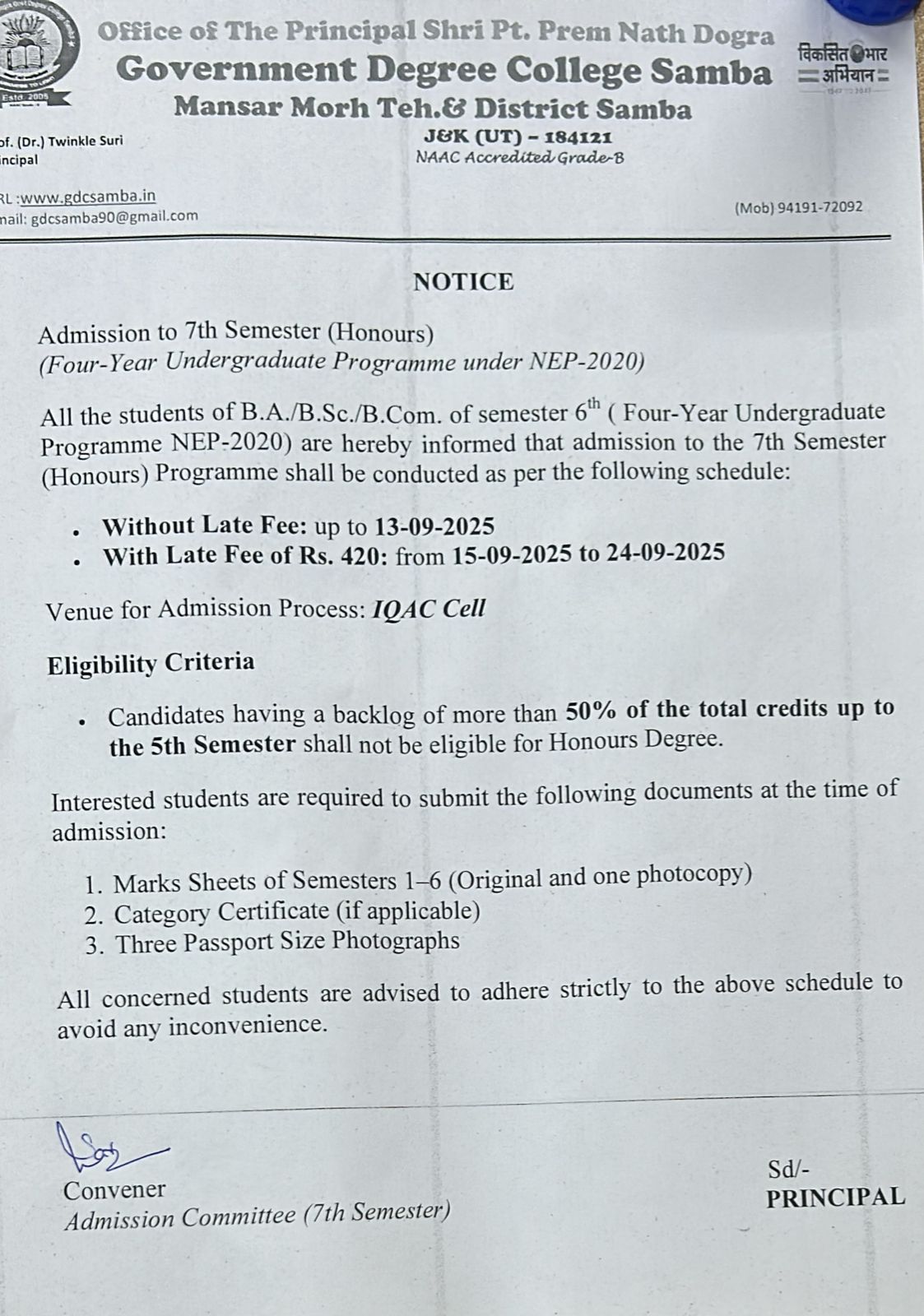 Shri Pandit Prem Nath Dogra Govt. Degree College, Samba