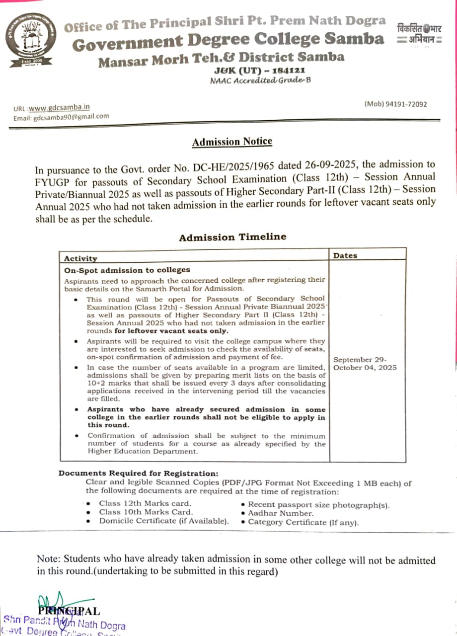 Shri Pandit Prem Nath Dogra Govt. Degree College, Samba